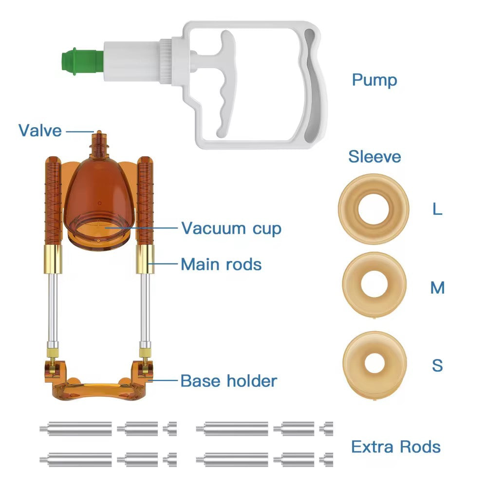 Le kit premium qui combine traction orthopédique (vacuum/sangle) + traction mécanique + pompe + accompagnement interne & externe pour une progression progressive, mesurable et discrète.